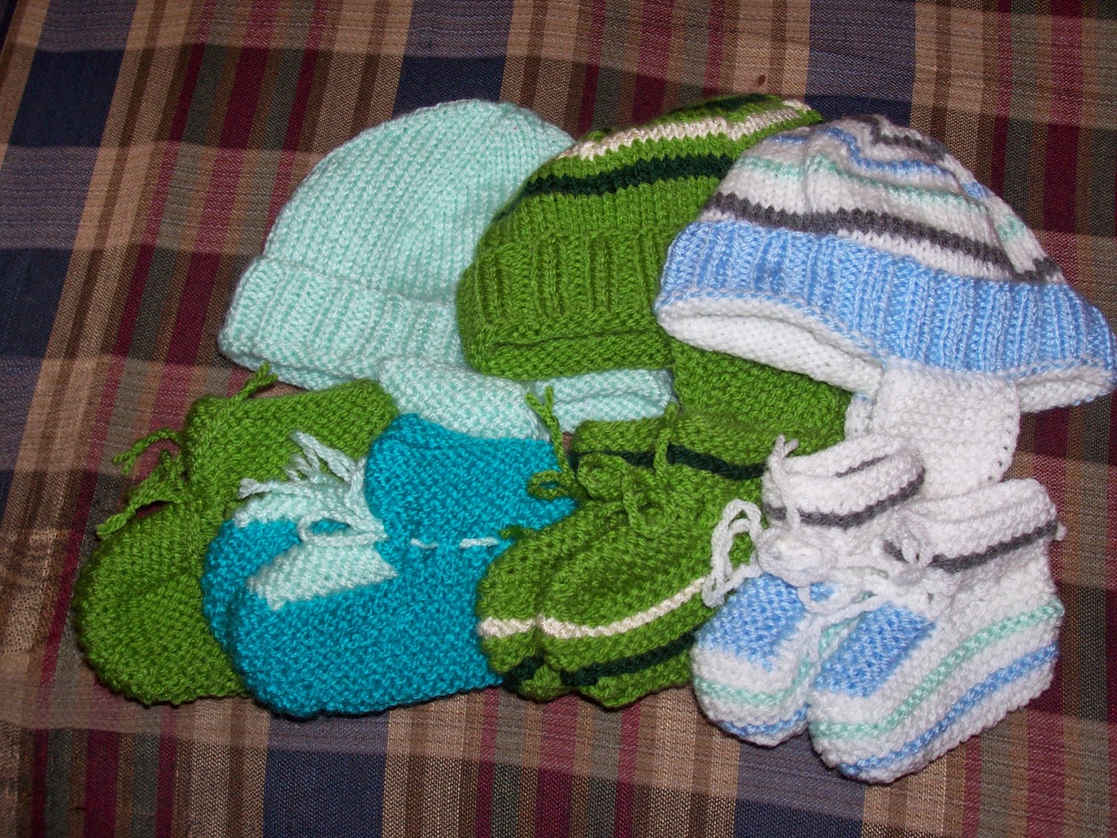 Un petit cadeau rapide pour une naissance. On peut les jumeler avec ces petits chaussons en les tricotant dans la même laine.