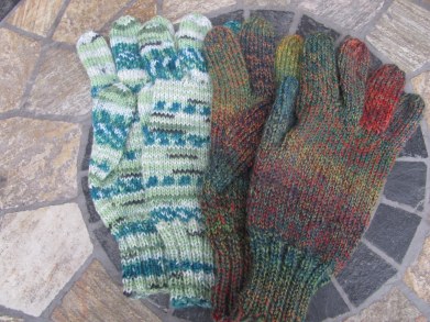 N.B. Les gants sont des mitaines plus fines, arrêtées vers le milieu de la main pour faire les doigts séparément avec les ms mises en attentes, ainsi que des ms supplémentaires montées et/ou relevées. Il est donc préférable d’avoir fait des mitaines avant de faire des gants.
