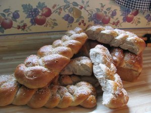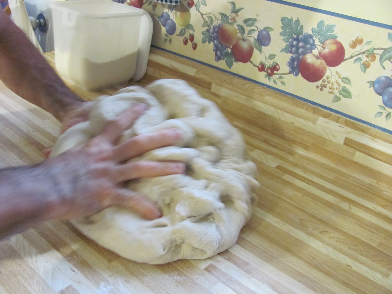 La recette complète est ici. Nous le faisons à 2, Yvan et moi. Il pétrit la grosse masse de plus de 24 tasses de farine et je fais le reste. C’est dur, ou long?