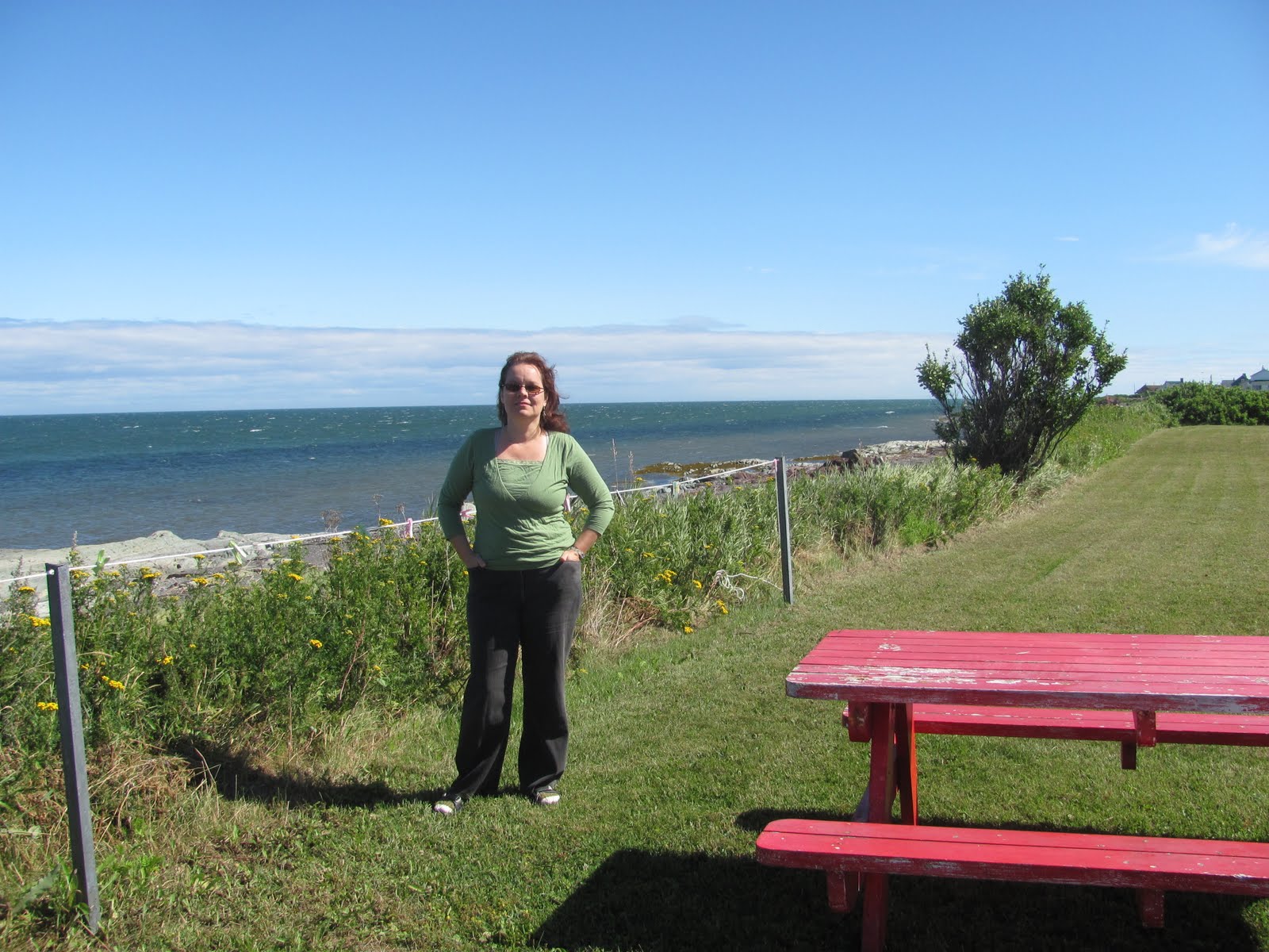 Pas parce que je suis particulièrement écolo (un tout petit peu mais vraiment pas plus qu’un autre), mais pour l’espérance, la nature (pas si « plein air » que ça non plus), la croissance. Quand il n’y aura plus de vert dehors, nous aurons un sérieux problème. Le vert, comme le bleu, m’apaise: on peut le sentir (snif!snif!). J’étais à Rimouski la semaine passée et, en plus de l’odeur de la mer, il y avait toutes ces fleurs odorantes et cette verdure…
