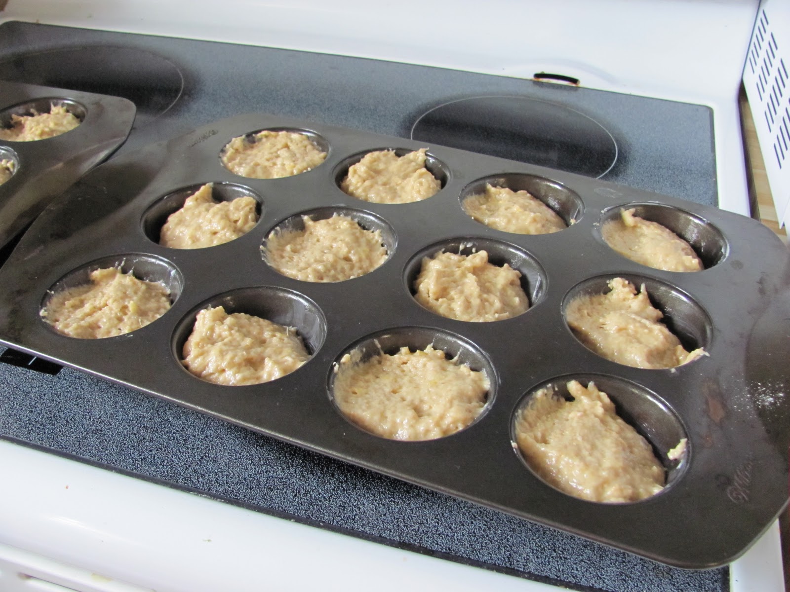 eau pour atteindre 2 3/4 tasse dans la tasse graduée: bien battre au fouet et verser dans le mélange sec. Bien brasser et incorporer les carottes ou les courgettes. Verser environ 1/4 à 1/3 tasse de mélange dans des moules à muffins graissés. Cuire environ 15-20 minutes à 350 degré. Laisser refroidir 5 minutes et démouler.