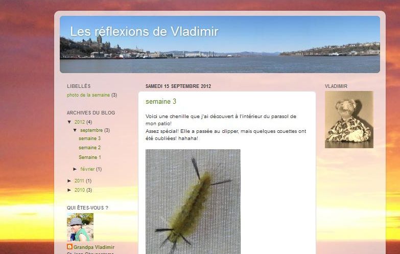 Pour me racheter, je vous entraîne vers le blog de mon mari qui « post » une photo de la semaine (c’est sa 3ème): c’est un petit défi qu’il s’est lancé, quand il a réalisé la tonne de photos pas si mal qu’il avait. Petit secret: Il le fait, en général le samedi.