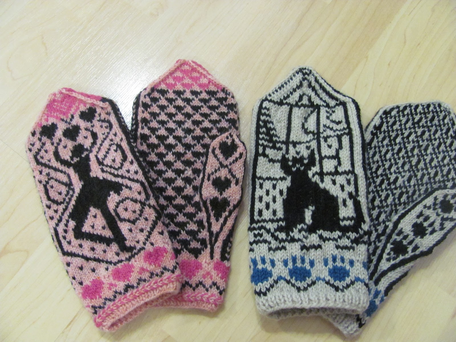 Et aussi, voici 2 de mes patrons de mitaines que j’ai refait: les mitaines danseuses, que j’ai fait un peu différemment, et le modèle Chat à la fenêtre.