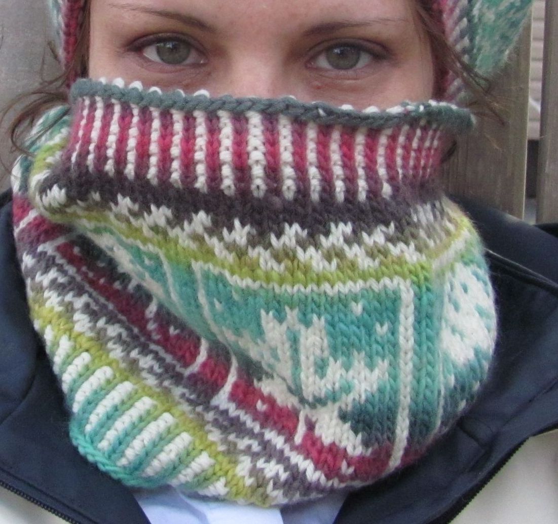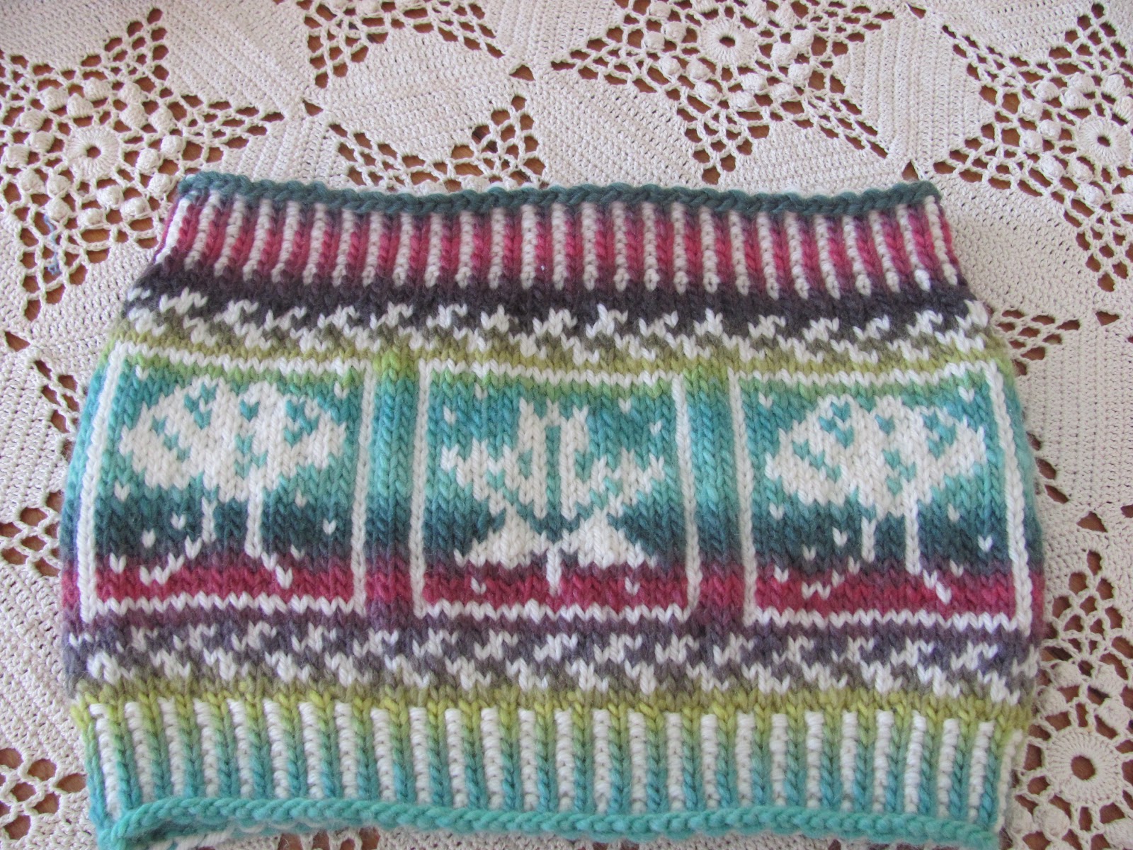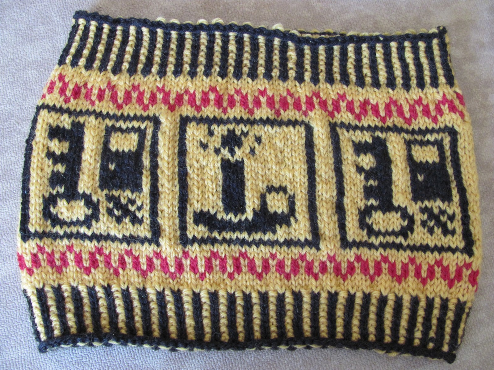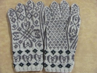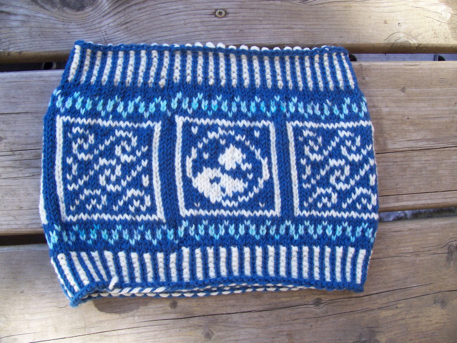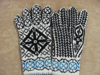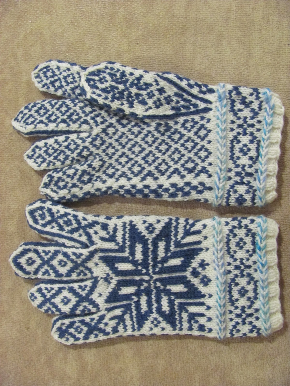 et, Symétrie no 5 en bleu, avec des tresses Lettones à la place d’une petite partie du jacquard du poignet.