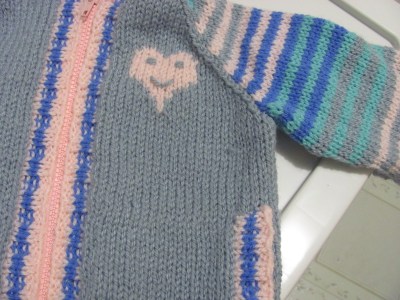 J’ai reçu à Noël, de mon mari, une lampe frontale pour pouvoir tricoter quand il n’y a pas assez d’éclairage. C’est Émily, la présidente de l’Association Francophone du tricot qui m’a donné l’idée et je l’avais mentionné à Yvan. Ça donne un look particulier…
