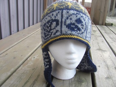 J’ai tricoté ça pour mes fils à Noël: j’ai donc ajouté un nouveau patron  à ma série Personnalisation, le bonnet à oreilles sampler, un patron que je n’avais pas du tout prévu de faire! C’était vraiment plaisant à tricoter…et rapide!