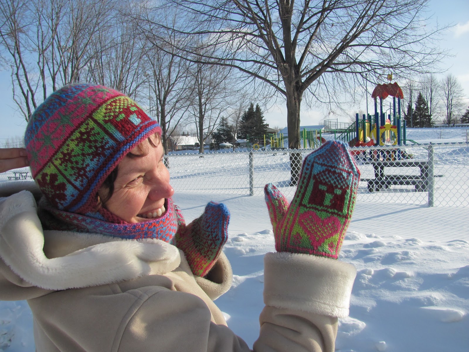 Et tant qu’à faire, je me suis fait un cadeau: le même bonnet et les mitaines plus épaisses de la collection pour aller avec l’écharpe alphabet que je m’étais faite.