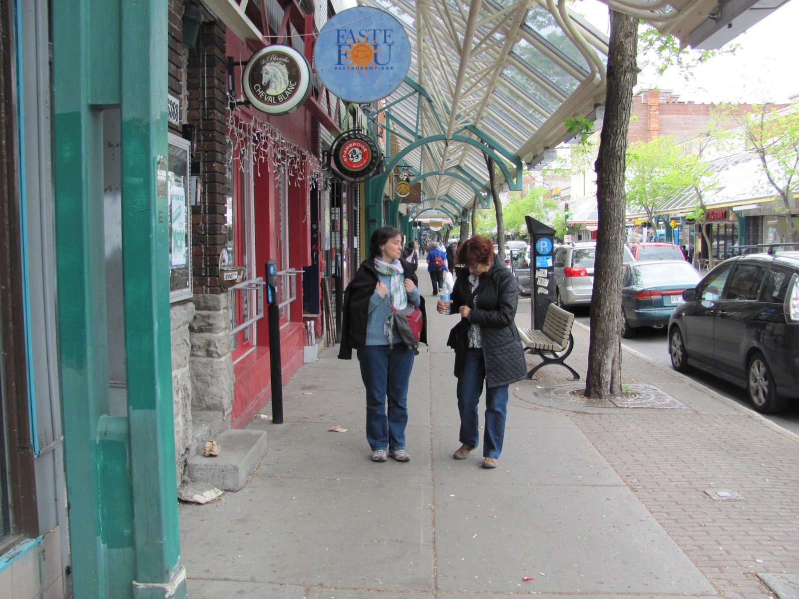 Anecdote du voyage, ou idée d’un 2ème titre: Mais pourquoi les voitures sont toutes dans l’autre sens? Et oui, c’est ce que vous pensez: nous nous sommes retrouvées en sens inverse dans un « one way ». Mais le plus drôle, c’est que nous « n’allumions » pas! Faut dire qu’il n’y avait pas de circulation sur cette rue (une petite rue qui coupe Monkland) et c’est dans les voitures stationnées que nous avons réalisé que quelque chose clochait.