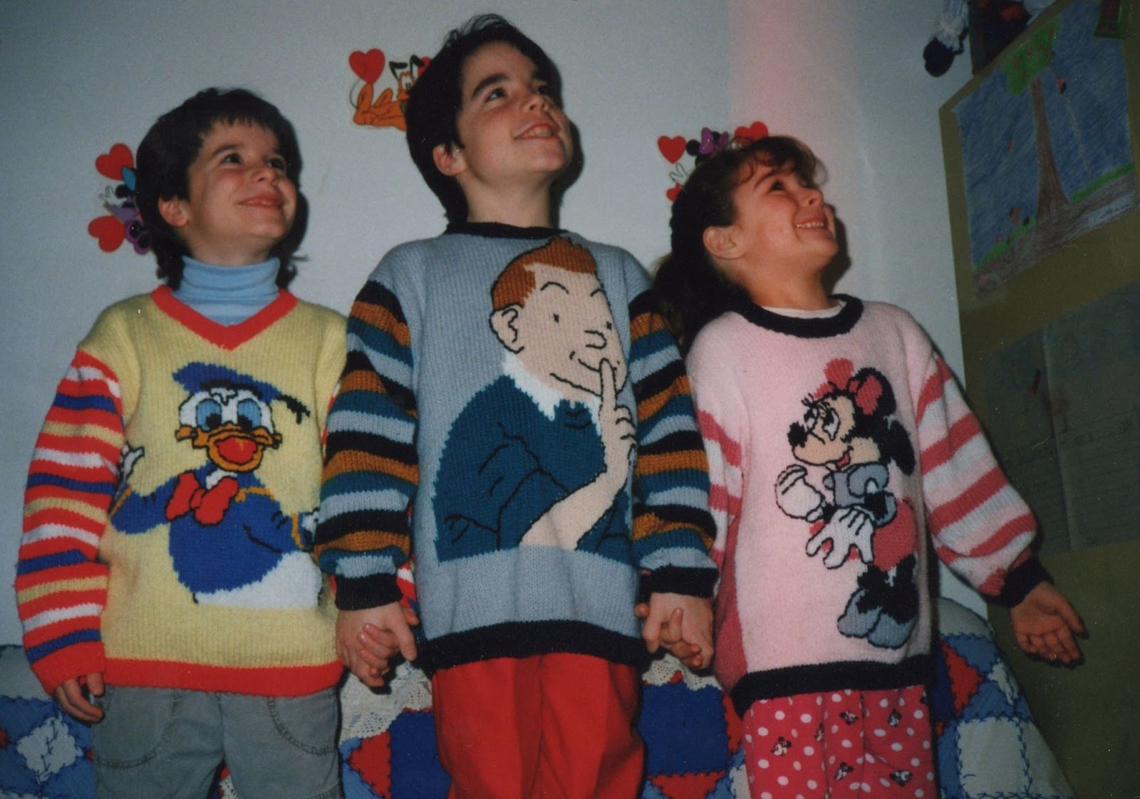 Avec la collaboration d’Yvan, nous avons « dessiné » des modèles de chandails avec des personnages de bandes dessinées qu’ils aimaient. Ces chandails étaient très simples. Seul le dessin devant les démarquaient. Le patron de gilet et les chartes sont dans les patrons sur PDF à droite(gratuits). J’en ai fait plusieurs….