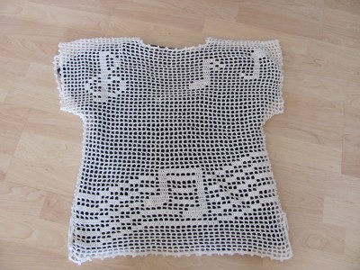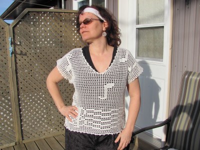 Donc, j’ai 2 patrons. Le thème étant la musique, j’ai fait ce haut crocheté en 2 versions: mer ou musique et je l’ai appelé « Sur un air d’été » en l’honneur de cette chanson de Pierre Bertrand.