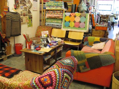 Le style est décontracté-bohème avec un petit coin salon de tricot craquant et une table pour les cours dans le fond. J’ai été assez à l’aise pour oser demander à la propriétaire si je pouvais prendre des photos: ça commence bien! Ce qu’il faut savoir, c’est que dans la vraie vie, je ne suis pas super-audacieuse.