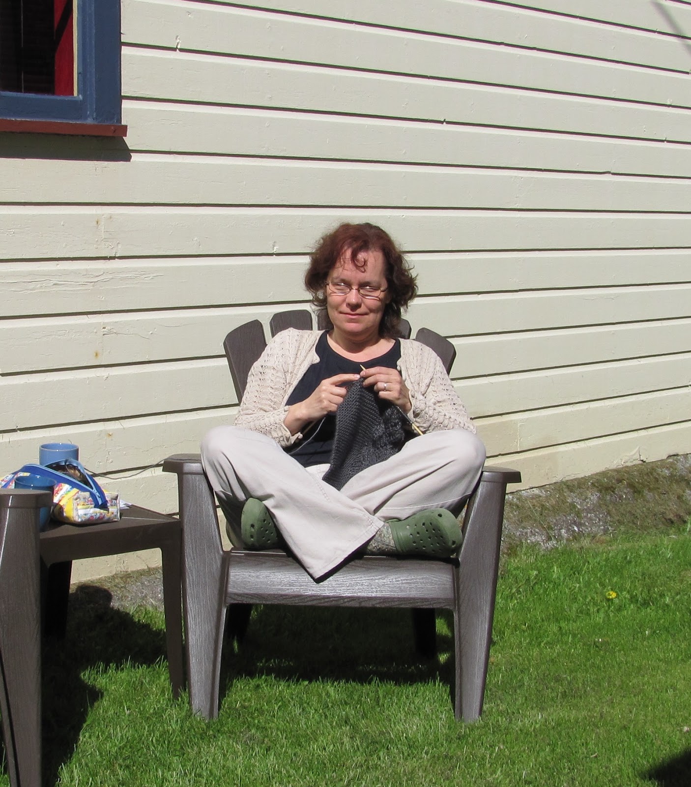Le lendemain matin, j’ai passé un agréable moment à tricoter dehors au soleil et au frais: génial!