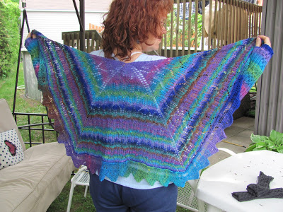 La Noro est une laine assez dispendieuse, alors si je ne suis pas satisfaite, je défais pour refaire autre chose. Je travaille présentement un autre fil « lace »: la kirameki, avec de la rayonne. La Kureyon, c’est de la laine, et la Silk garden, c’est de la soie, laine et mohair. On se gâte à tricoter avec de si beaux fils!