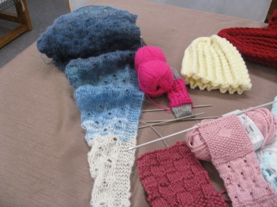 Mes cours pour l’automne 2013 sont terminés. Je félicite mes élèves chaudement. Certaines ont fait un pas de géant dans la compréhension des patrons et de ce qui se déroule sous leur doigts. Voici en vrac quelques photos des résultats et de certains projets en-cours qu’elles vont compléter vaillamment par la suite. Je commence par le cours intermédiaire-avancé que j’avais présenté dans mon message d’annonce de cours. Et j’avais 2 groupes: