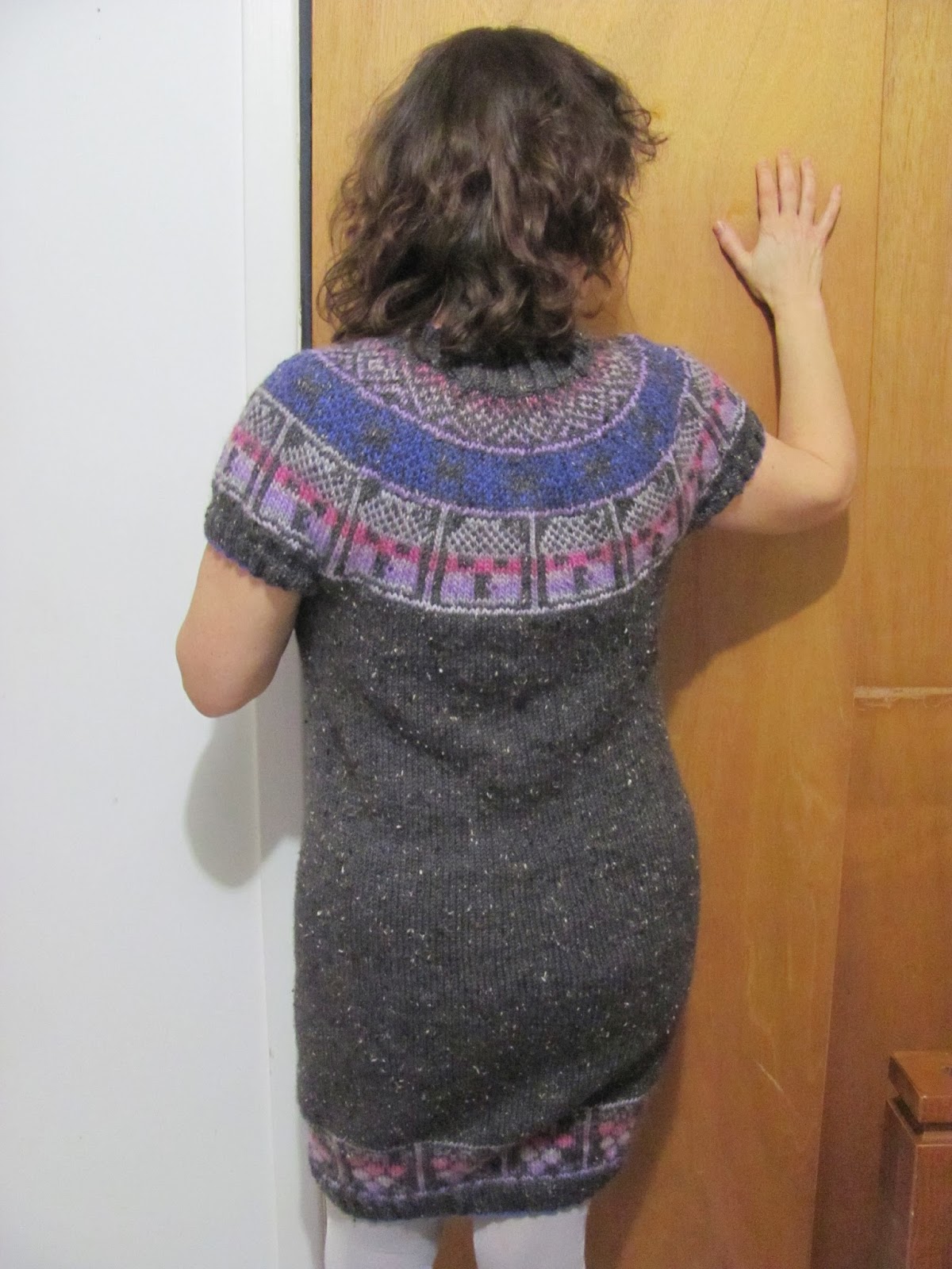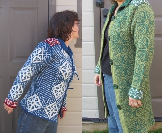 Sur ravelry (royaume du tricot sur le web), dans un groupe, il y avait comme sujet de discussion « Fierté 2013 ». Moi, j’ai mis la photo ci-haut, ne pouvant me décider lequel je préférais de ces 2 « steeks » (quand on coupe dans notre tricot): ils sont de moi (les patrons) et je suis contente du résultat.