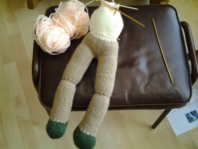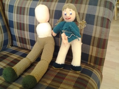 Au 1er cours, j’avais disposé, pour Claudie ces poupées, d’autant plus qu’elle veut se faire une grand-mère. Pour me mettre « dans le bain », je m’y remets, moi aussi. L’idée est aussi d’avoir quelques nouvelles poupées pour mon exposition d’avril. Forcément en avril, les mitaines, les gants et les tuques, c’est moins bon.