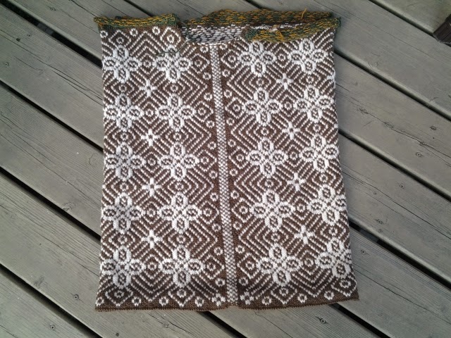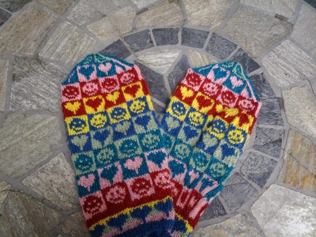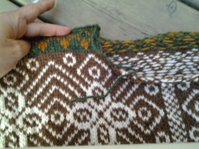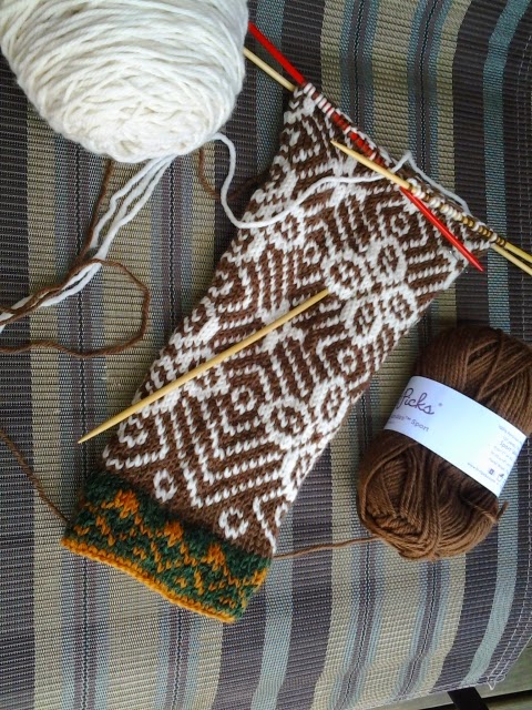 Ci-haut, un nouveau patron (pas publié à l’époque, mais en 2017: mitaines Gaspésie), inspiré de tous ces paysages d’arbres vus dans mes vacances.