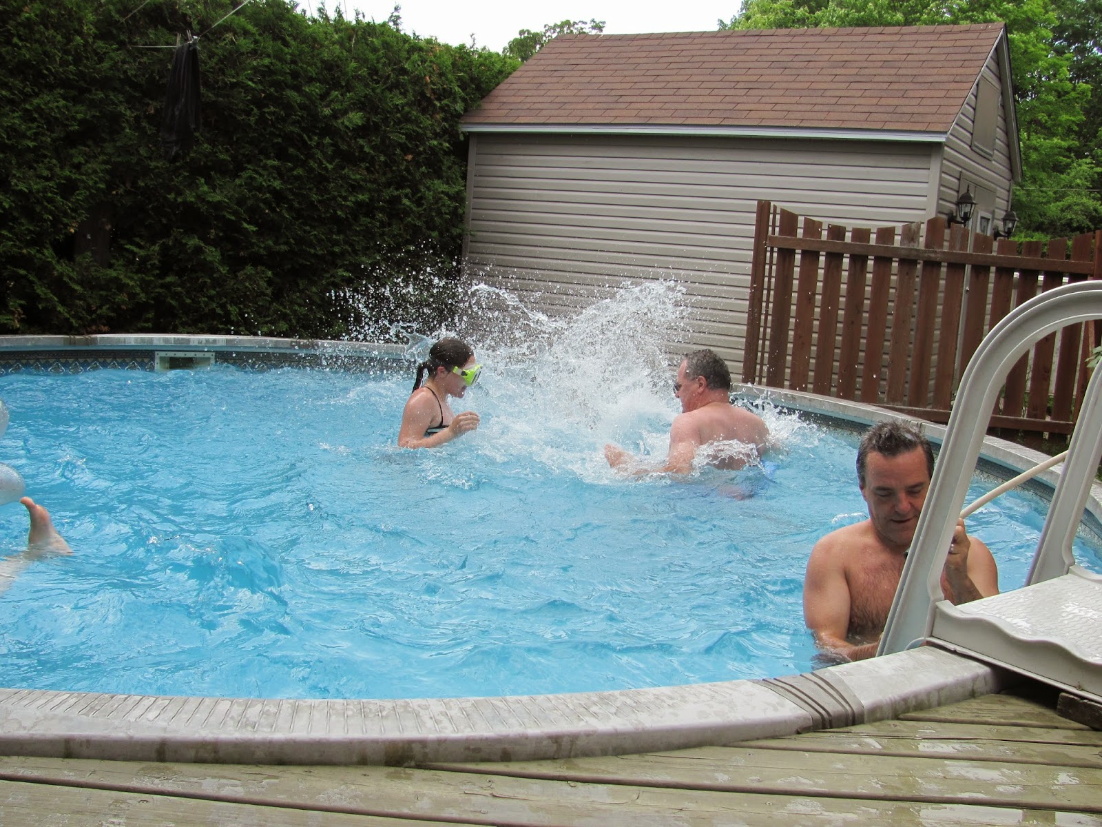 | L’eau de la piscine est plus fraîche, mais Yvan se baigne toujours! |