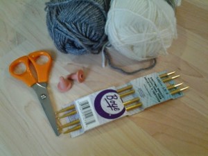 Le matériel: 1-Je suggère d’acheter un ensemble (préférablement de 5) d’aiguilles à double-pointes qui servira par la suite pour apprendre à tricoter en rond, plutôt que des aiguilles droites qui sont longues et inconfortables au début. La grosseur? 3.5 ou 4mm serait l’idéal.