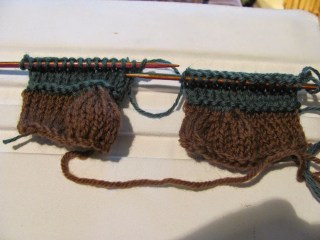 Bobettes, fesses: Joignez les 2 jambes et à partir de maintenant, tric en rond( donc tout à l’end pour le jersey)). Faire 4 rgs droits et un rg env. Coupez le fil.