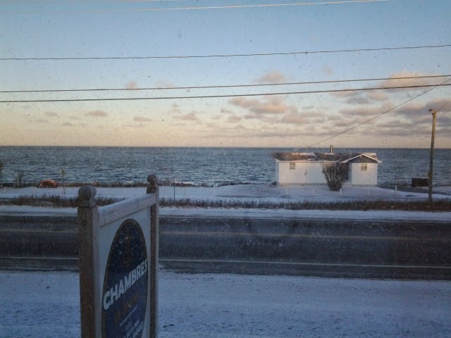Nous avions déjà pris une chambre à cet endroit. C’est une maison de chambre attenante au motel de la mer. J’espérais qu’il y ait de la neige, mais je ne voulais surtout pas de tempête pendant la route!