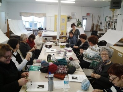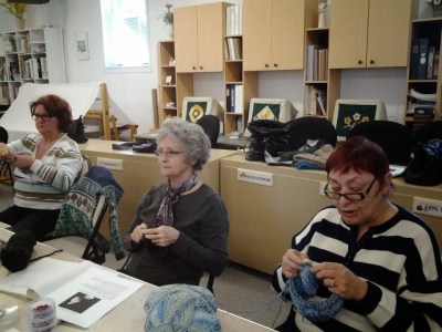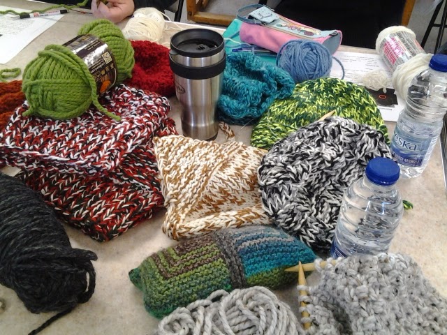 Samedi dernier, une bande de joyeuses tricoteuses et moi-même, avons consacrés quelques heures à la confection de bonnets en très grosse laine avec de grosses aiguilles pour la Maison des Haut-Bois.