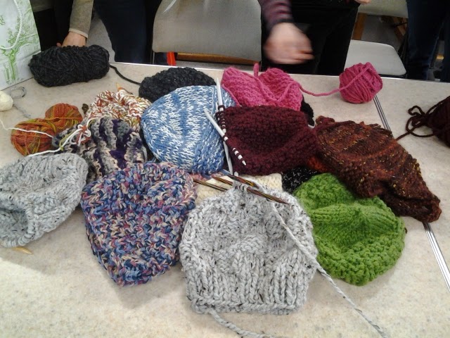 Les bonnets extrêmes! Plusieurs personnes les ont testés lors des 2 ateliers. Pour le moment, ils ne sont qu’en Français. Vous allez voir: c’est tellement rapide pour du tricot! En 4 heures (le temps de l’atelier), plusieurs ont terminé leur bonnet, et certaines, avant la fin.