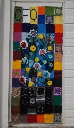Cette année, c’est le 100ème anniversaire des Cercles des fermières. Voici le tricot-graffiti de mon cercle. Je vous en parlerai davantage puisque j’ai décidé de faire une série d’articles sur les fermières, le 100ème et les tricots-graffitis fait en cet honneur, ainsi que mon propre 10ème anniversaire dans cette association.