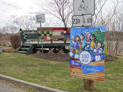 Une petite banderole à St-Agapit. Leur cercle est dans une ancienne gare de train: charmant!