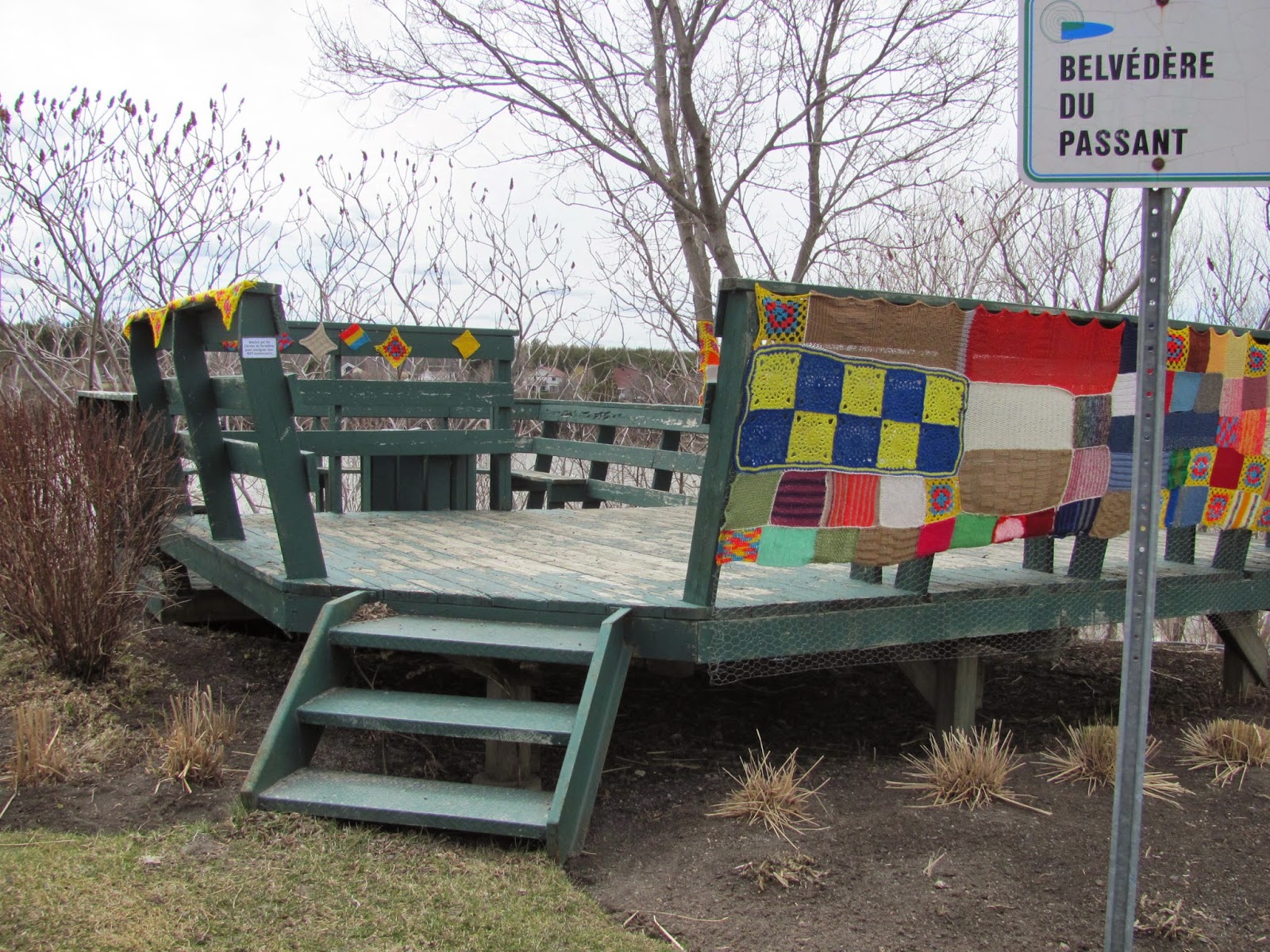 Dans un autre article, je vous raconterai un peu plus ma petite histoire dans mon cercle (St-Jean-Chrysostome). Et je continuerai de parcourir le vaste monde, euh…Québec, pour trouver des tricots-graffitis. D’autant plus que les Chocolats Favoris ont créés d’autres saveurs de « trempages » au chocolat: il va bien falloir que je les essaie tout en visitant ces œuvres bien spéciales!