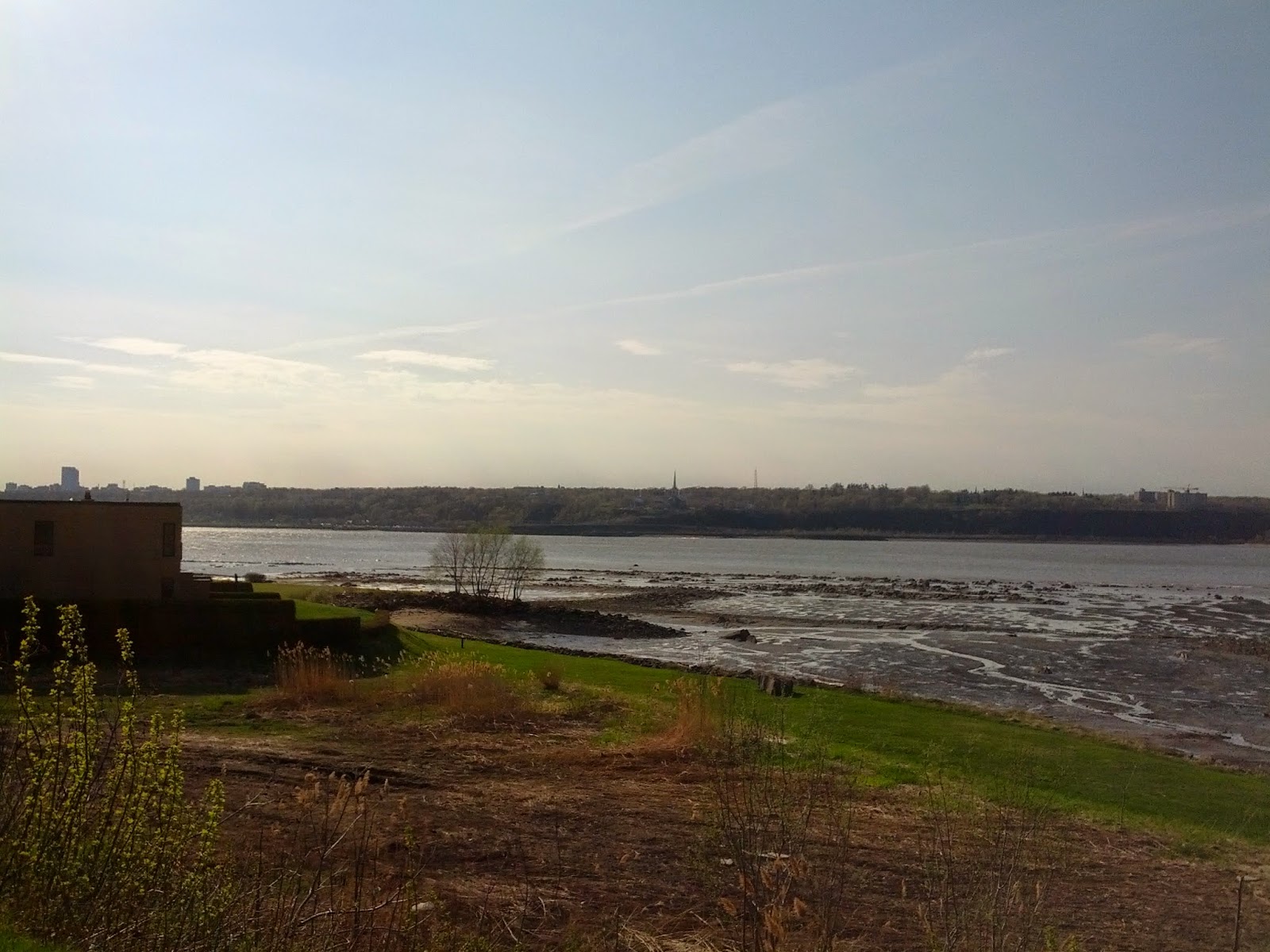 Pas grand chose me direz-vous: juste 2 km. Mais après, j’ai terminé de descendre la côte du passage jusqu’au traversier pour emprunter la piste cyclable, qui longe le fleuve St-Laurent, et je l’ai fait à pied jusqu’à St-Romuald: 7 km!