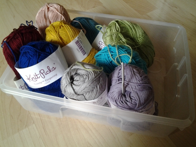 D’abord, j’avais beaucoup d’un fil de coton et acrylique (75% coton, 25% acrylique) en grosseur no 1: De la comfy fingering de knit Picks. Je vais donc utiliser un crochet de 3 mm pour le faire (sauf pour la chaînette de départ, si vous voulez un col moins près du cou).