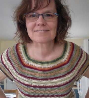 Aujourd’hui, je vous partage une petite recette de haut simple en brides. Il part du haut et n’a pas de coutures. On peut lui ajouter des manches, en faire une veste. Mais ce n’est pas un patron complet! La qualité des photos laisse à désirer et vous devrez vous débrouiller un peu par endroits. Je ne vous donnerai pas toutes les grandeurs possibles. Je vais vous expliquer ce que j’ai fait.