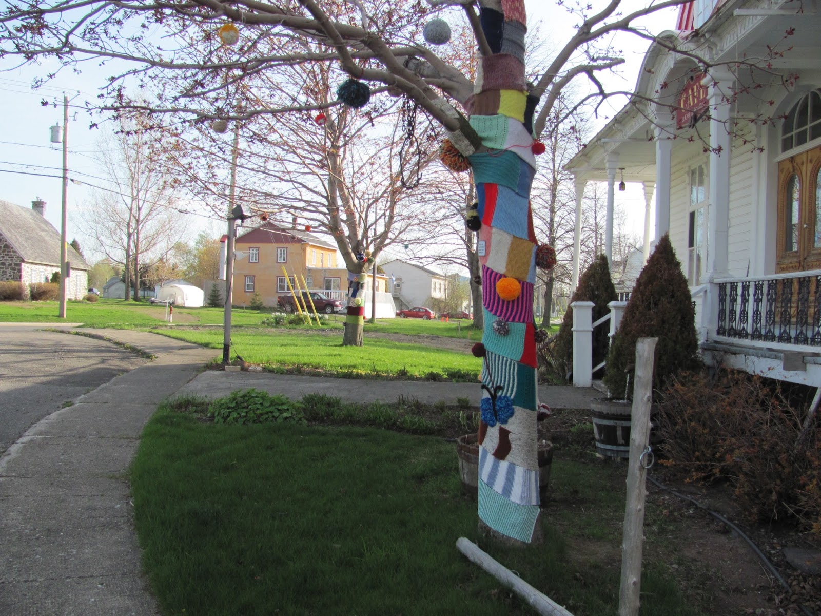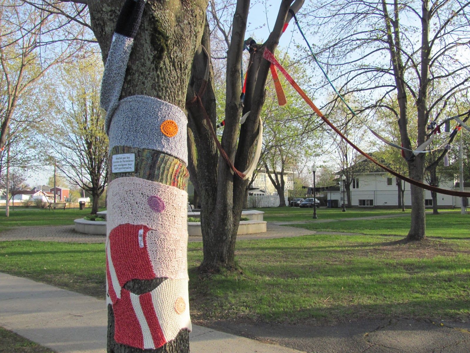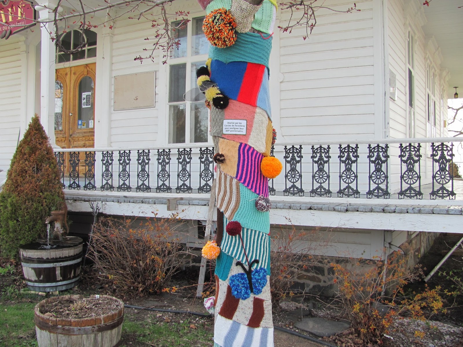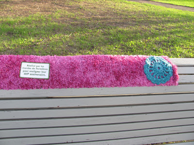 J’en suis à mon 4ème article sur les tricots-graffitis que je trouve et que les CFQ ont fait à travers la province. Vous pouvez voir les autres que j’ai fait sous mon libellé fermières.