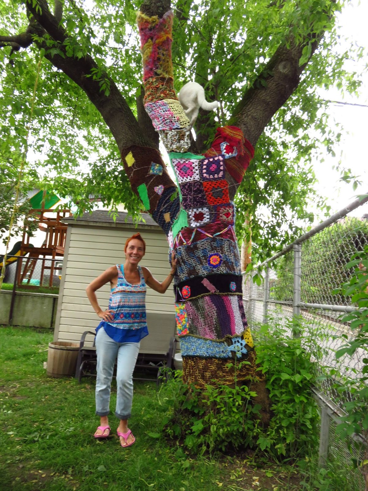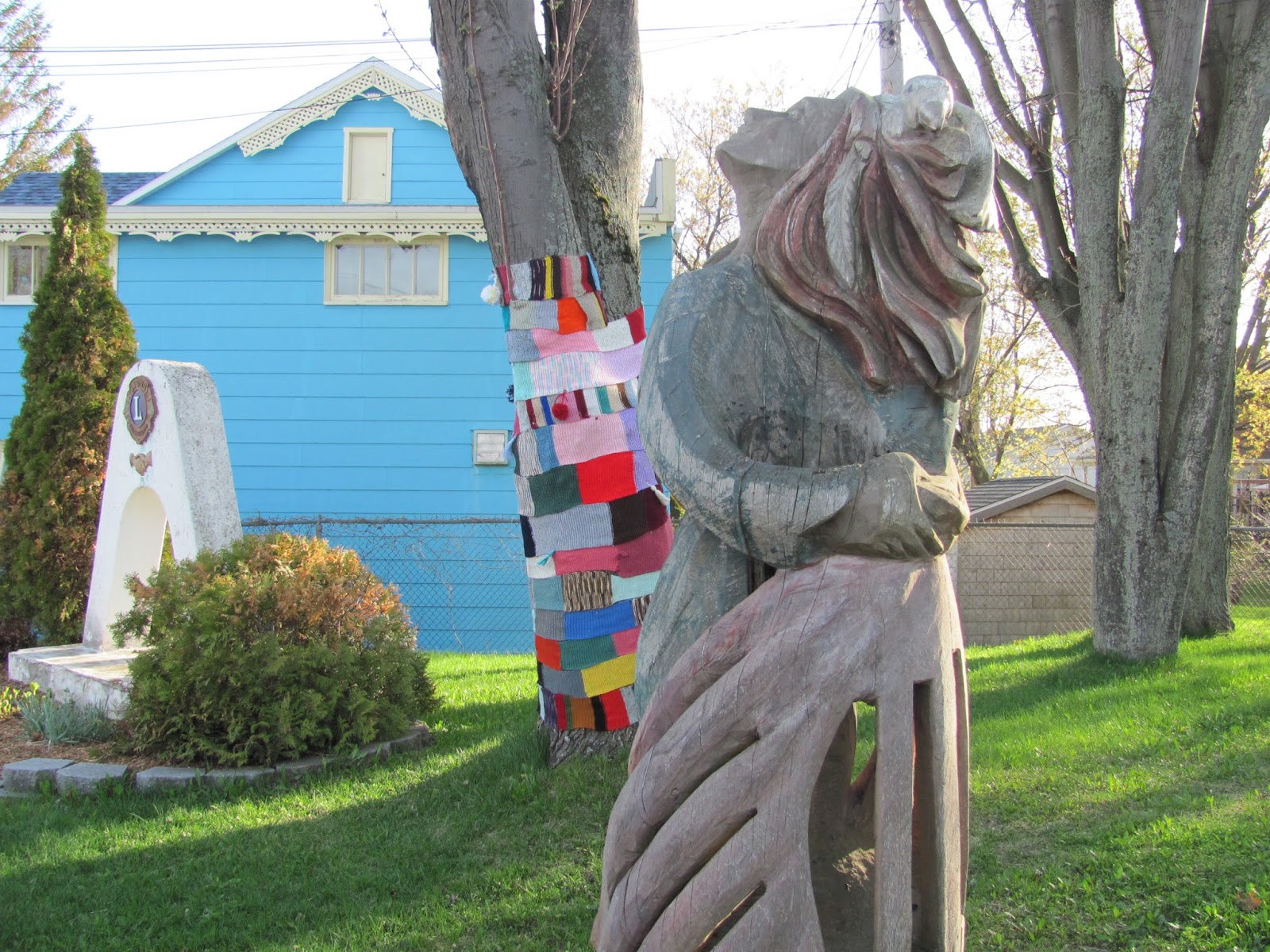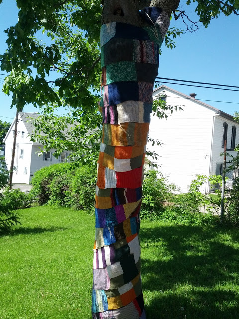 J’en suis à mon 4ème article sur les tricots-graffitis que je trouve et que les CFQ ont fait à travers la province. Vous pouvez voir les autres que j’ai fait sous mon libellé fermières.