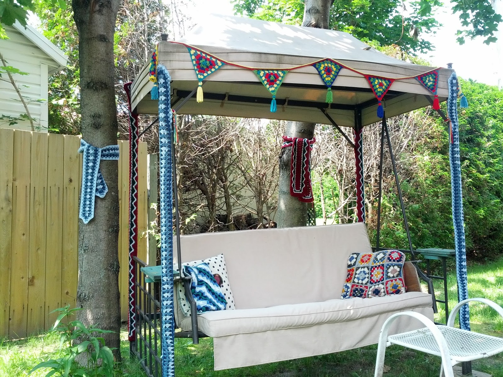 Le 1er que j’ai prévu faire est toujours en attente puisqu’il nécessite la collaboration de mon mari chéri. Alors, en attendant, plus discret que celui prévu, j’ai installé ceux-là à l’aide, surtout, de couvertures inachevées.