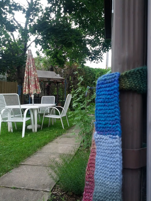 Depuis une couple de mois, je vous montre les tricots-graffitis rencontrés lors de mes petites excursions pour trouver ceux faits par les CFQ pour leur 100ème anniversaire. Je vous ai même montré celui d’une amie (à la fin de l’article).