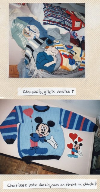 À ce moment, je faisais du tricot (bien sûr), du crochet, de la couture et des chocolats. Je ne me suis jamais enregistrée comme compagnie, mais j’ai un tout petit peu vendu dans une boutique seconde main de mon patelin qui avait accepté de prendre une couple de choses en consignation. Mon tricot n’était pas ce qu’il est aujourd’hui, je dois dire. Je tricotais beaucoup d’acrylique.