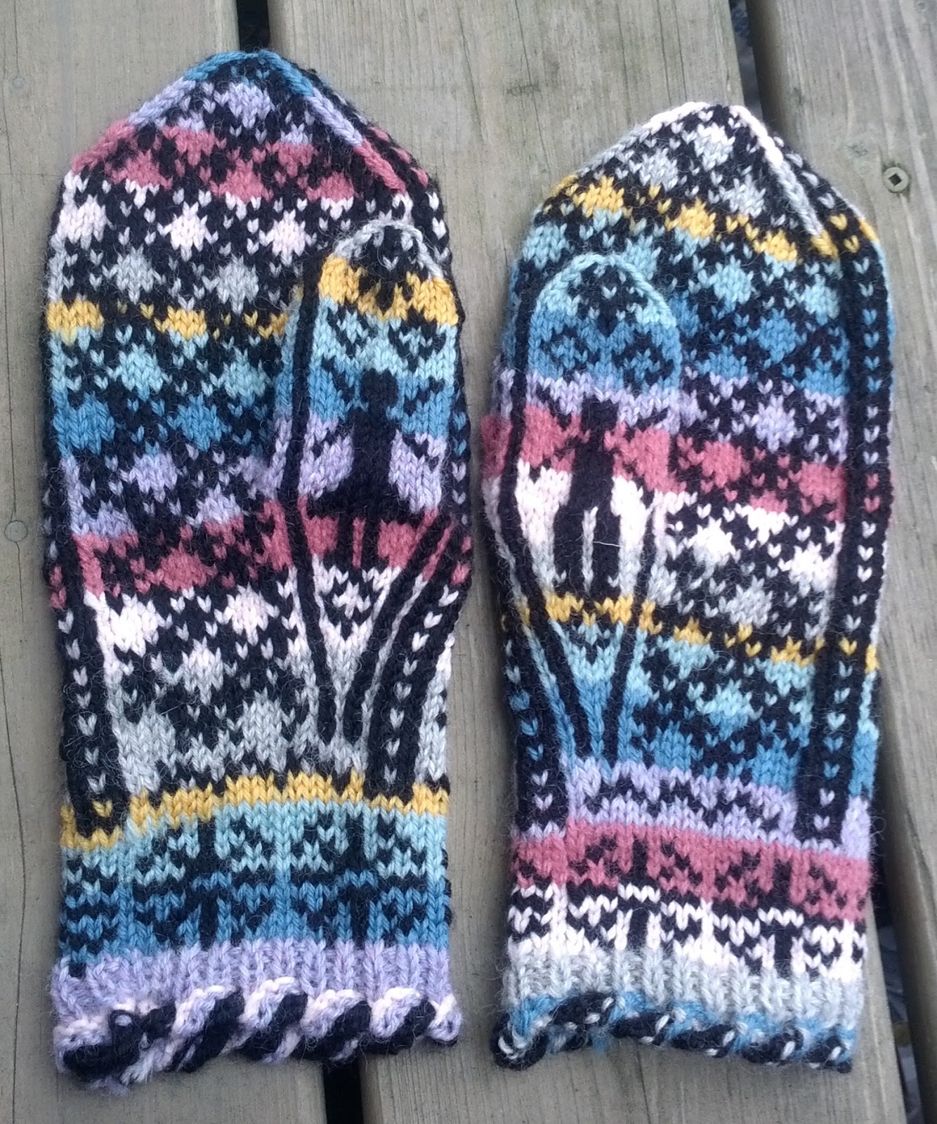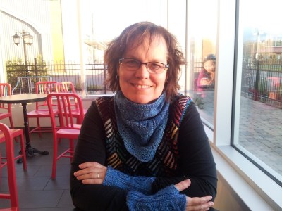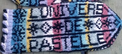 Me suis fait plaisir en tricotant des mitaines « Les tricots de Zab » sur une main et « L’Univers de Pastelle » sur l’autre main. Le tout en changeant de couleur avec le « spit & split » (pas de bouts à entrer à l’infini).