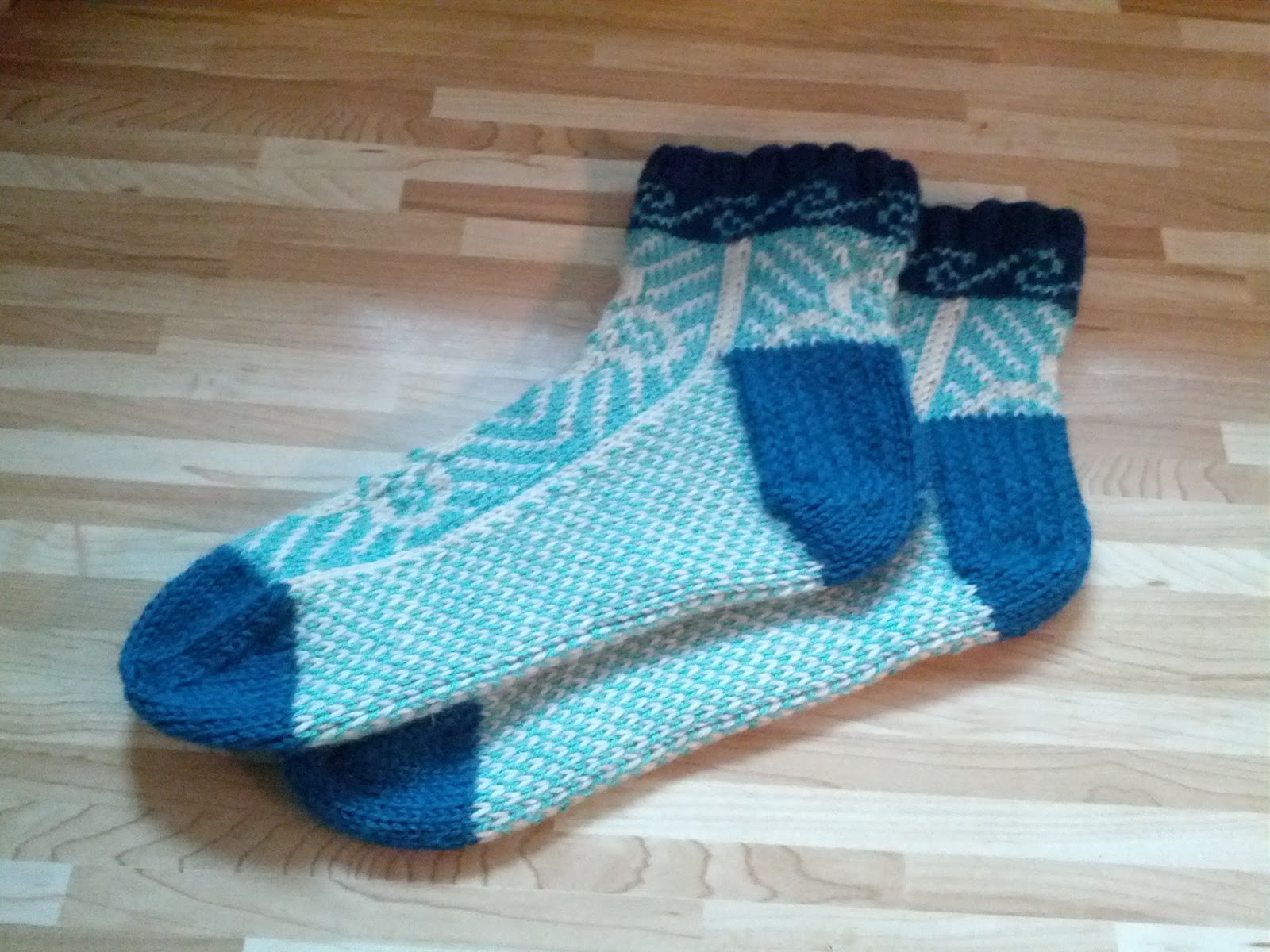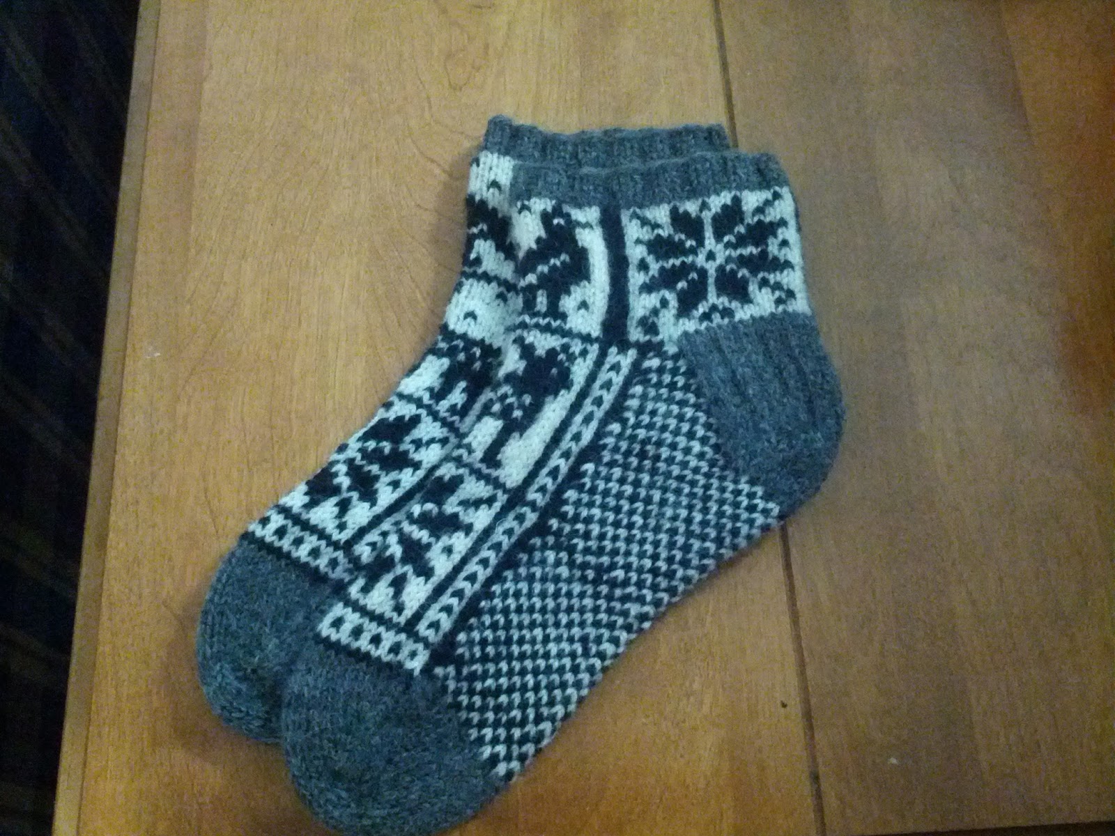 Et, ce que j’ai fait le mois passé: une série de bas épais et courts. Il en manque une paire que vous verrez quand je sortirai le patron…cette semaine! Les autres, que vous voyez, sont tous en attente: aucun patron publié.