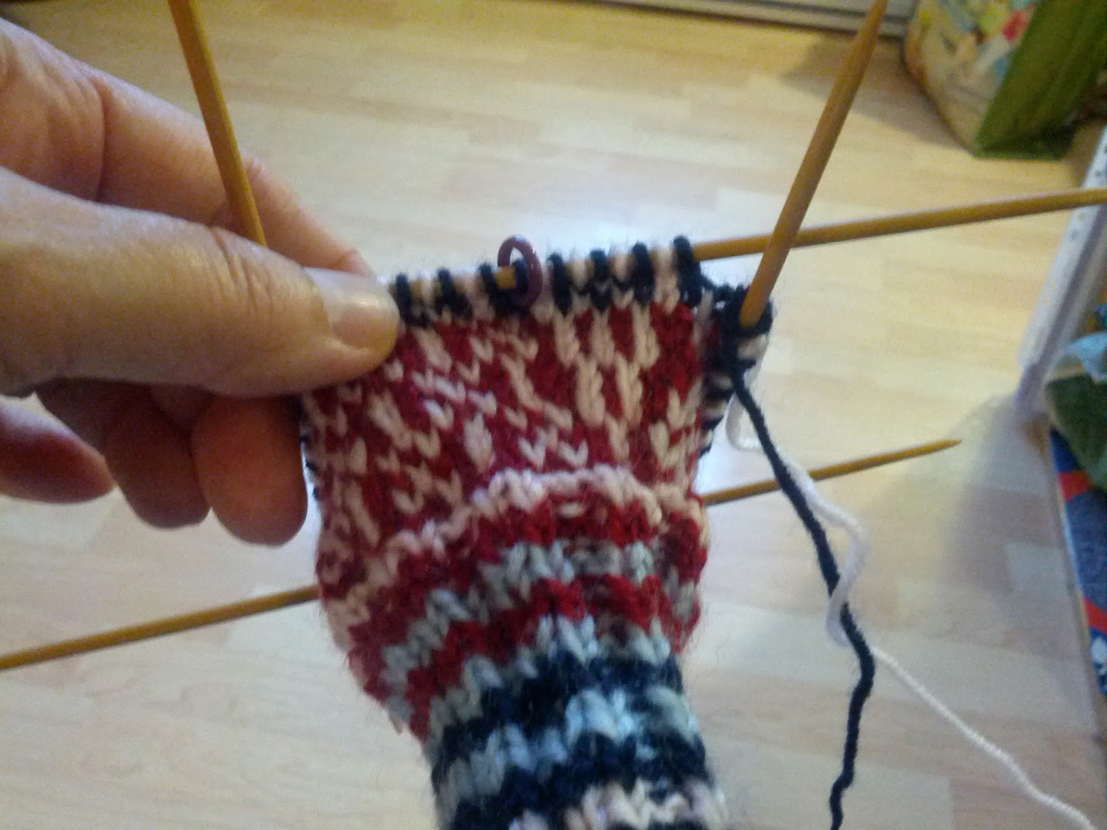 Autre truc: Le gousset du pouce commence avec les 3 premières mailles du tour. Mettez un marqueur après ces 3 mailles. Vous retrouverez facilement votre gousset. Et les augmentations seront faites au tout début du rang ET juste avant le marqueur, ceci à tous les 3 rangs.