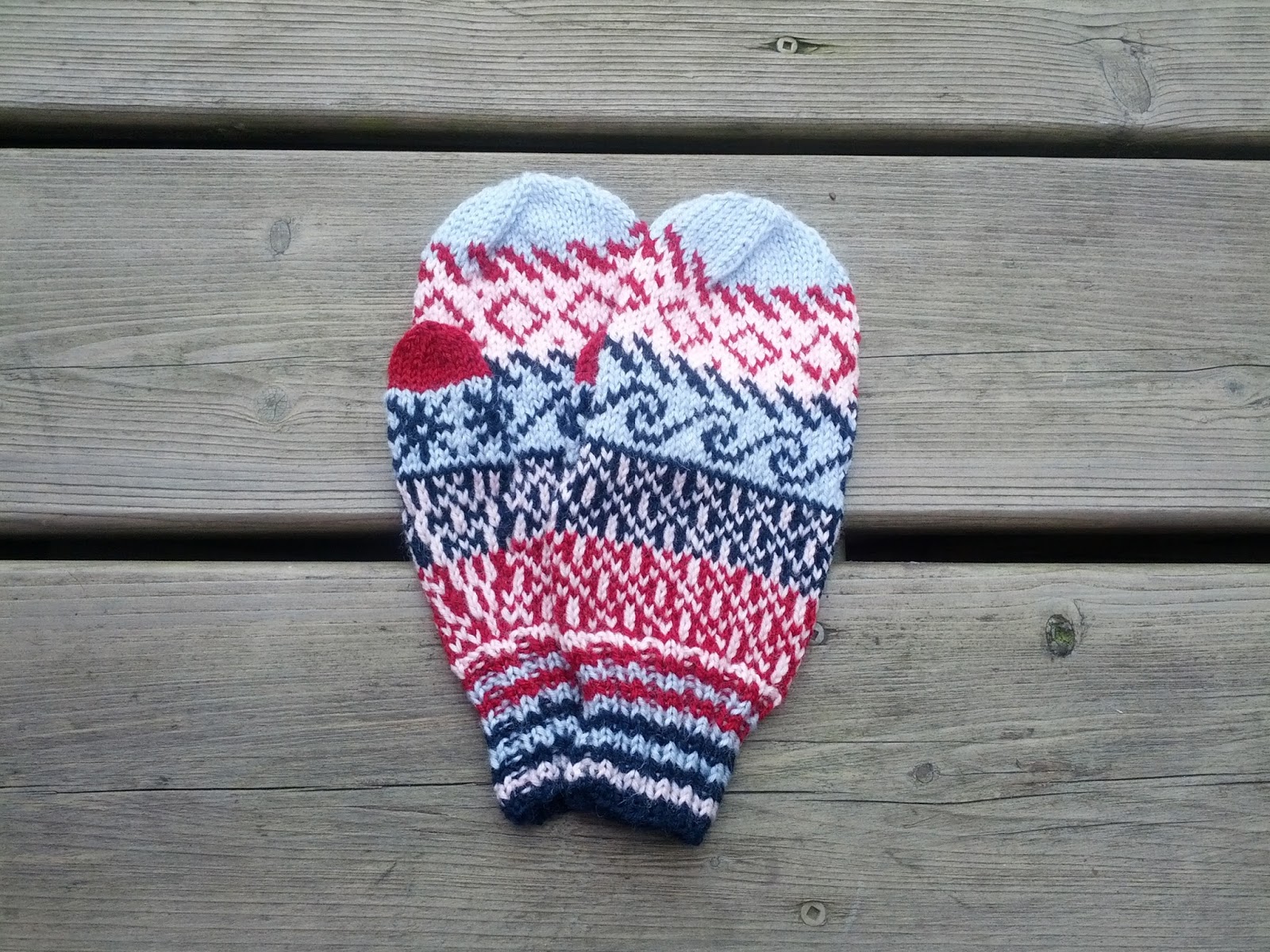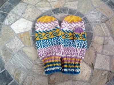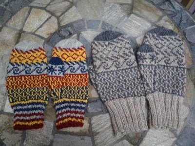 Tout d’abord, j’avais commencé à préparer ce patron avant de le proposer à l’Actuelle. Mon but était de faire un patron de mitaines qui pouvait faire pour une 1ère paire en jacquard.