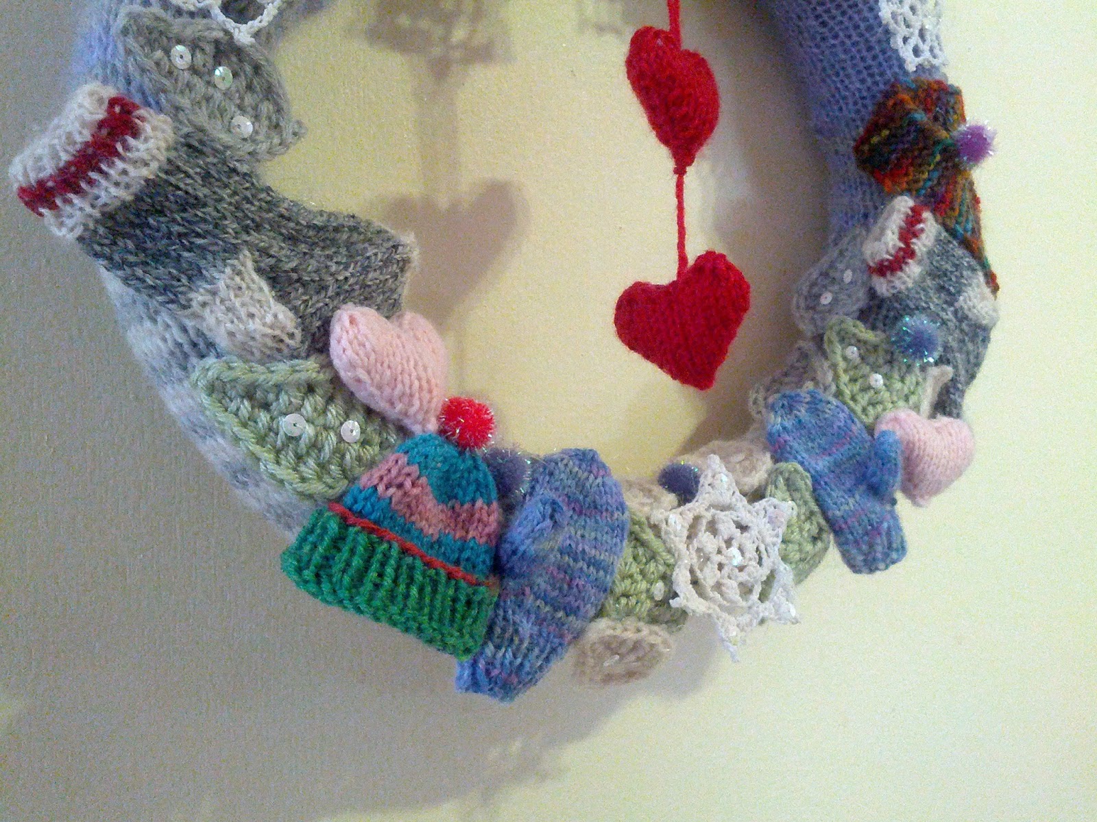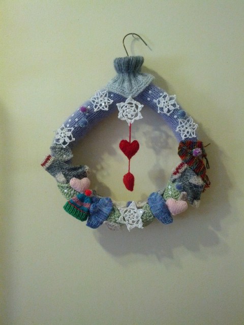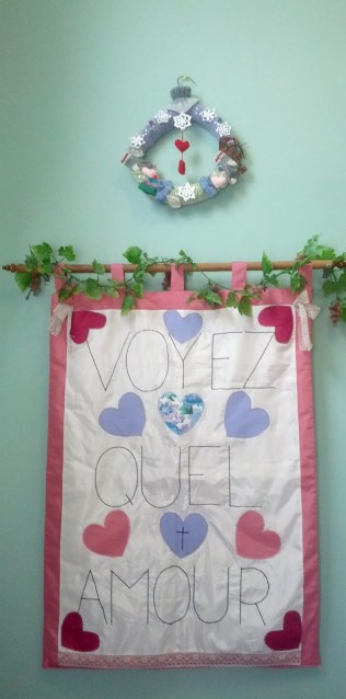 Me voilà avec ma couronne d’hiver, pour juste après Noel jusqu’en mars. Ce petit coin de mur aura, lui aussi ses couronnes de saison. Puis, je ferai peut-être un autre coin, mais ça, on verra.