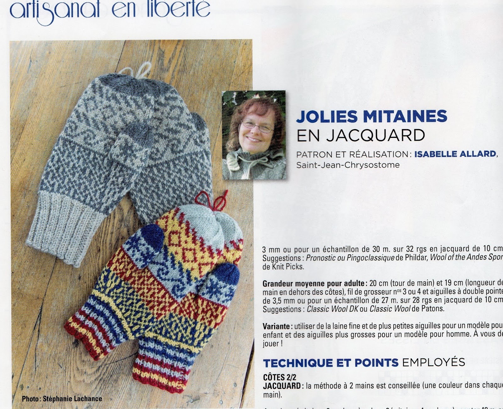 Vous savez mon patron dans l’Actuelle? Et bien, il est maintenant sur ravelry (en français et en anglais) depuis jeudi, sous le nom « mitaines actuelles ». Il coûte quelque chose toutefois. Mais, j’ai lancé une promotion de vendredi à jeudi (prochain, le 11 février 2016). Avec le mot de passe « fermieres » (oui, pas d’accent) comme coupon de code, il est gratuit.