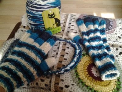 Côté tricot, je me suis fait des gants, un bandeau,et je vais bientôt faire un petit col: tout ça avec un seul écheveau de Félix (maintenant Bisocks) de Biscotte & cie. Je vous en redonne des nouvelles! C’est pas mal hein l’idée de voir jusqu’où on peut aller avec un seul écheveau de laine « précieuse »?