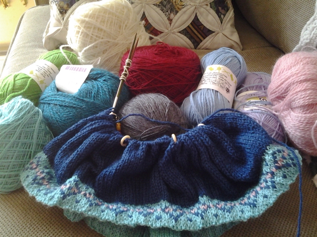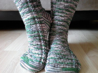 Et, côté tricot, je fais des bas. Ce sont tous des expérimentations, aucun patron prêt à être publié.