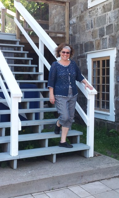 L’été, j’ai chaud! Je ne porte pas n’importe quoi tricoté ou crocheté. Je me suis déjà fait de petites camisoles tricotées, mais je ne les porte qu’à 22 degré et moins.