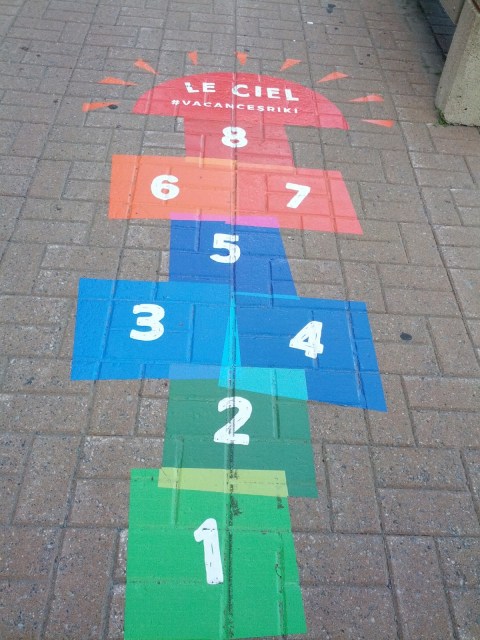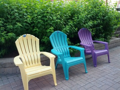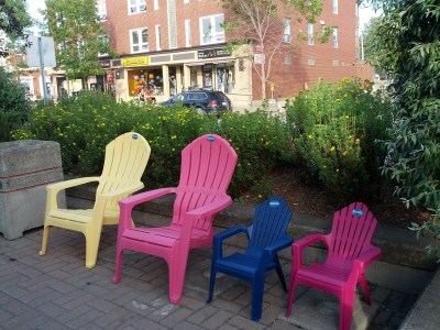 En ville, une petite nouveauté: des chaise de type Adirondack de couleur, un peu partout, comme pour nous dire « vous pouvez flâner ici…et là ».