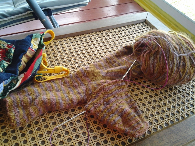 | Je me baigne dans le fleuve comme ça: les pieds dans l’eau et eau sous les bras (l’eau est quand même à 60 degré, à peu près) |