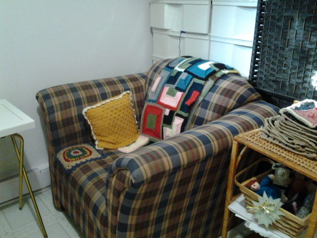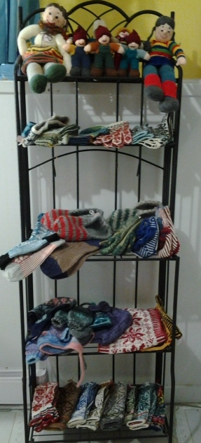 | L’étagère que j’ouvre, à l’occasion, pour vendre quelques petits tricots |